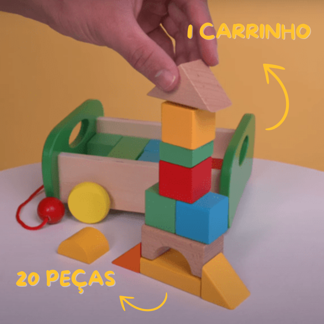 Blocos de Montar Carrinho de Madeira e Formas Geométricas