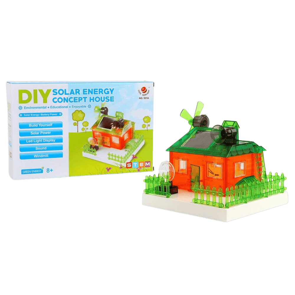 Por meio da montagem “faça você mesmo” (DIY), as crianças aprendem, na prática, como funciona uma casa movida a energia solar, podendo comparar duas formas de alimentação: painel solar ou 2 pilhas AA (não inclusas). Essa comparação ajuda a compreender a importância da energia limpa e o impacto do consumo consciente no dia a dia.