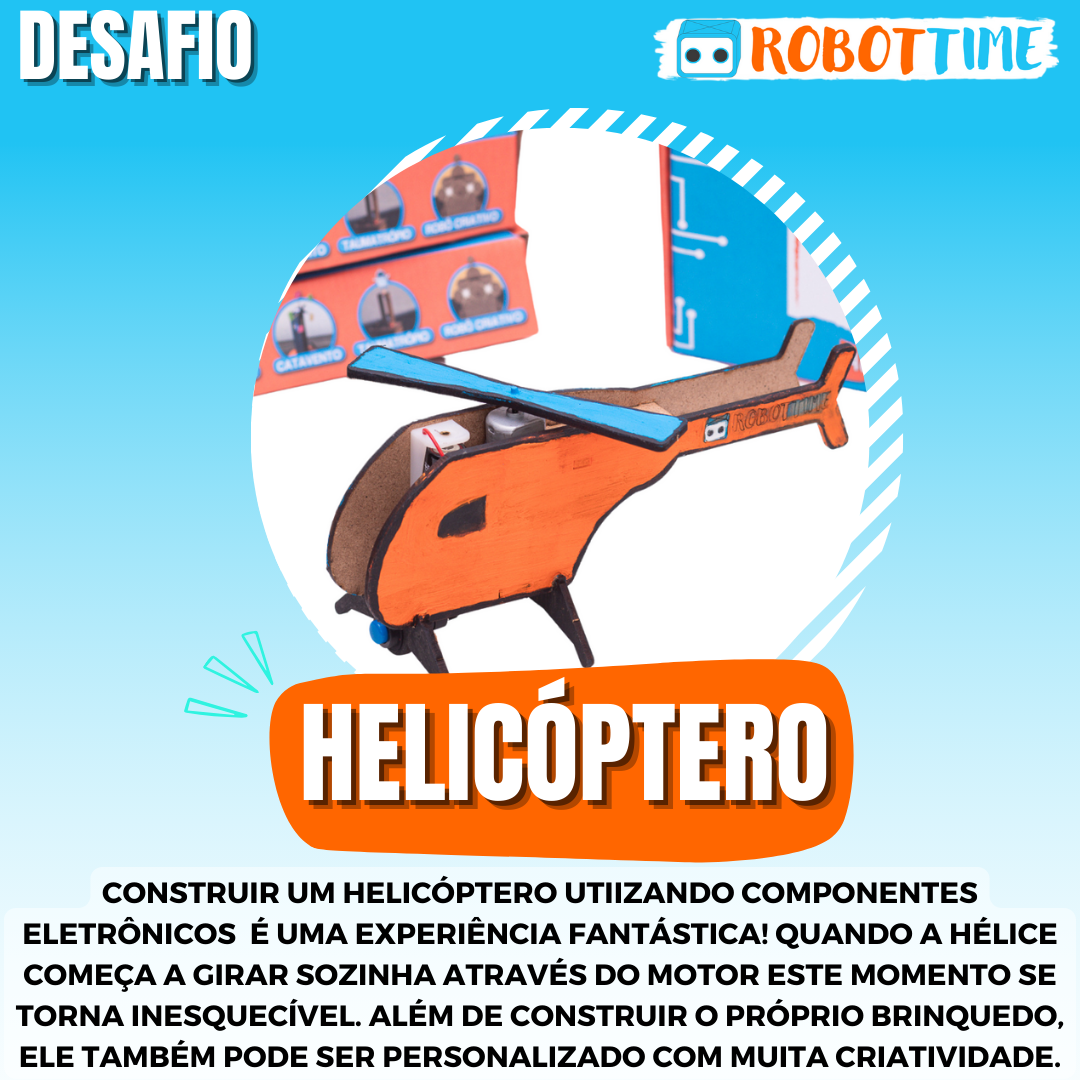 Descrição do Produto: Este “Kit Robottime Helicóptero” foi desenvolvido para aprimorar habilidades e capacidades cognitivas e criativas das crianças. Com ele, os pequenos vão exercitar o pensamento crítico e a concentração, enquanto se divertem com um método de aprendizagem lúdico e descontraído.